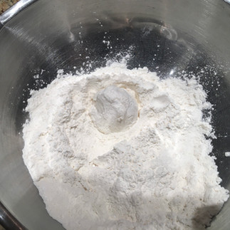 The process also seemed pretty simple -- all of the dry ingredients went into a mixing bowl and were mixed with a fork. The photo isn't very exciting, three white powdery ingredients, but since I took it I thought I should share it with you!