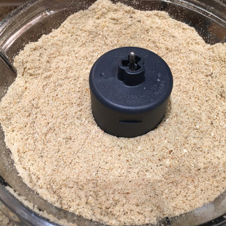 Now the fun part, I got to use power tools -- the food processor. The breadcrumbs, oregano, red pepper, parmesan, and black pepper were added to the food processor bowl and pulsed until the mix was finely ground. Of course, my cooking wouldn't be an adventure unless I did something wrong. Did you know that our Cuisinart food process can still operate even if the rear latch isn't 100% engaged? Yep, it will. FYI -- if it isn't fully engaged when you do bread crumbs you will end up with a small pile of very fine bread crumbs on the counter behind the food processor...