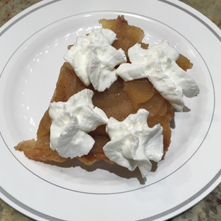 I'm pretty disappointed that my crust turned out really nice but ended up being on the bottom of the tart where no one saw it. It was a really nice and flaky, crispy crust that tasted downright delicious. I loved eating it plain but my sous chef, Elizabeth, liked adding some home made whipped cream -- actually, she shook the can of "whipped topping" and sprayed some of it onto her piece. Definitely not a French topping...